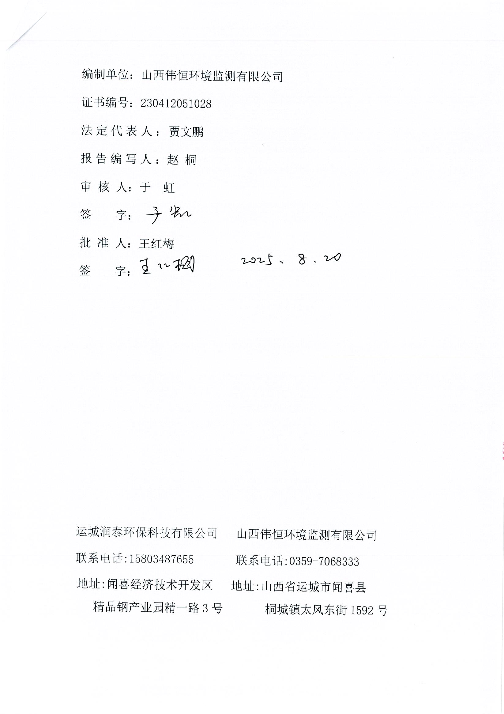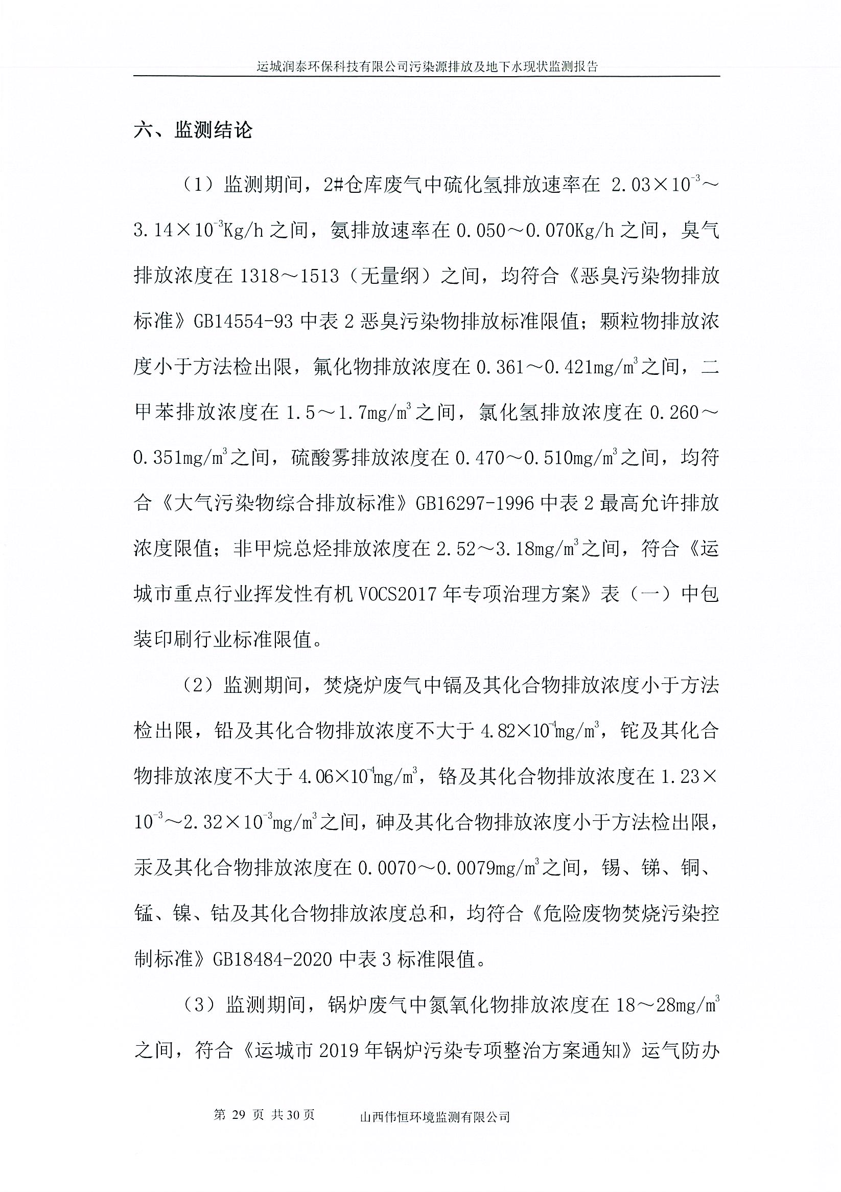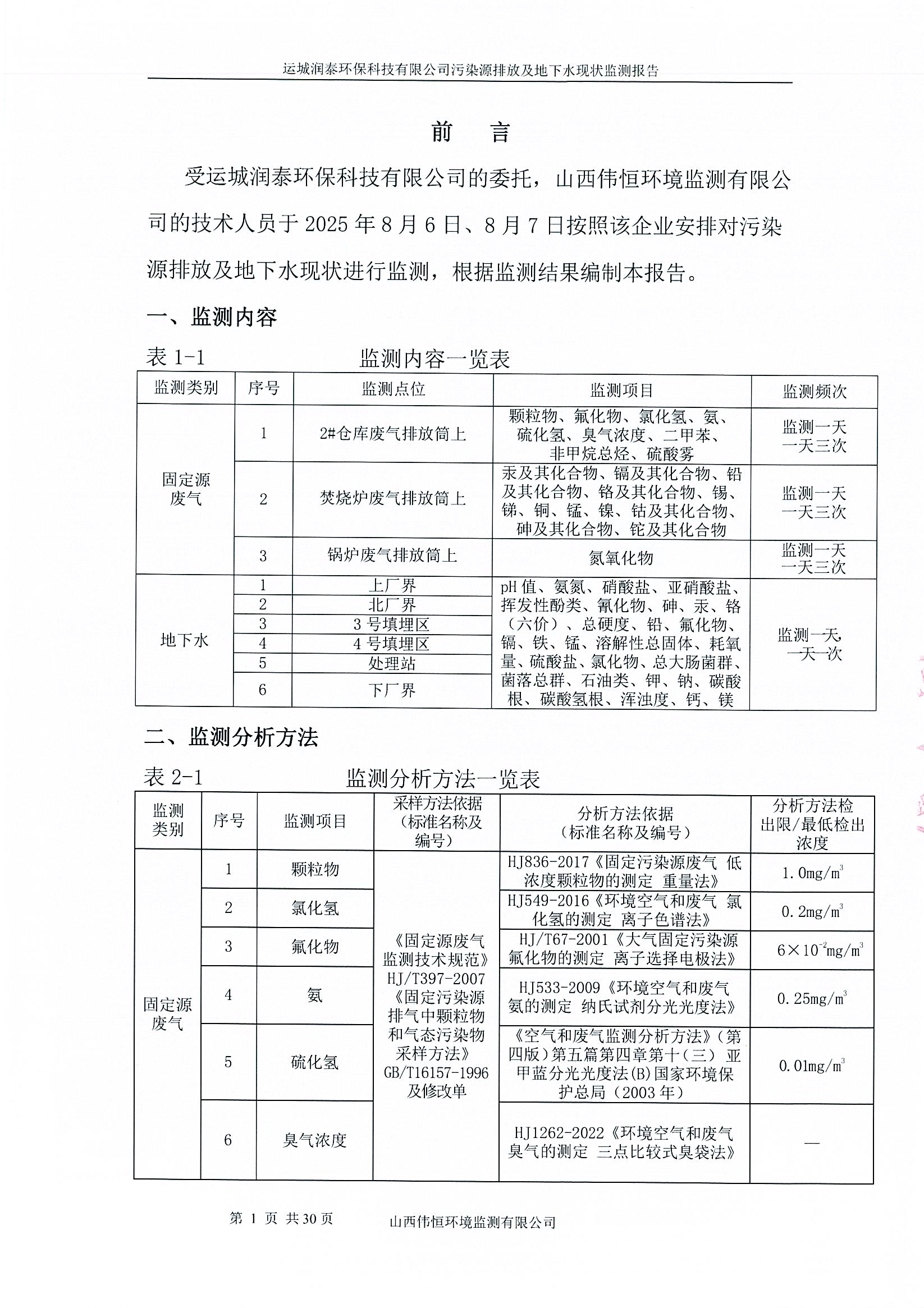 2025年潤泰環(huán)保八月份自行監(jiān)測報告