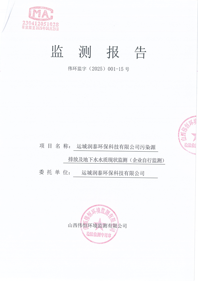 2025年潤泰環(huán)保十二月份自行監(jiān)測報(bào)告