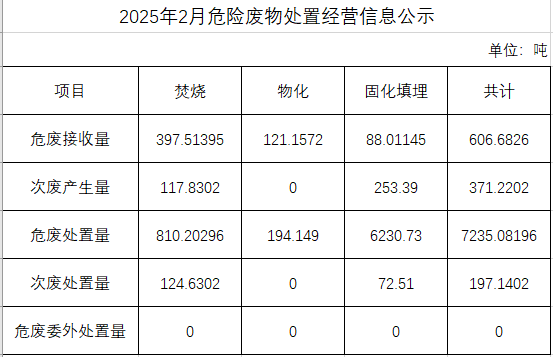 2025年二月危險廢物處置經(jīng)營信息公示