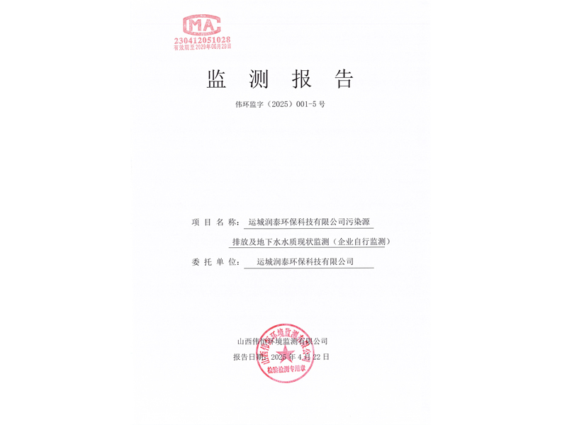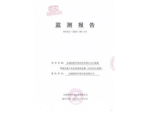2025年潤泰環(huán)保四月份自行監(jiān)測報告
