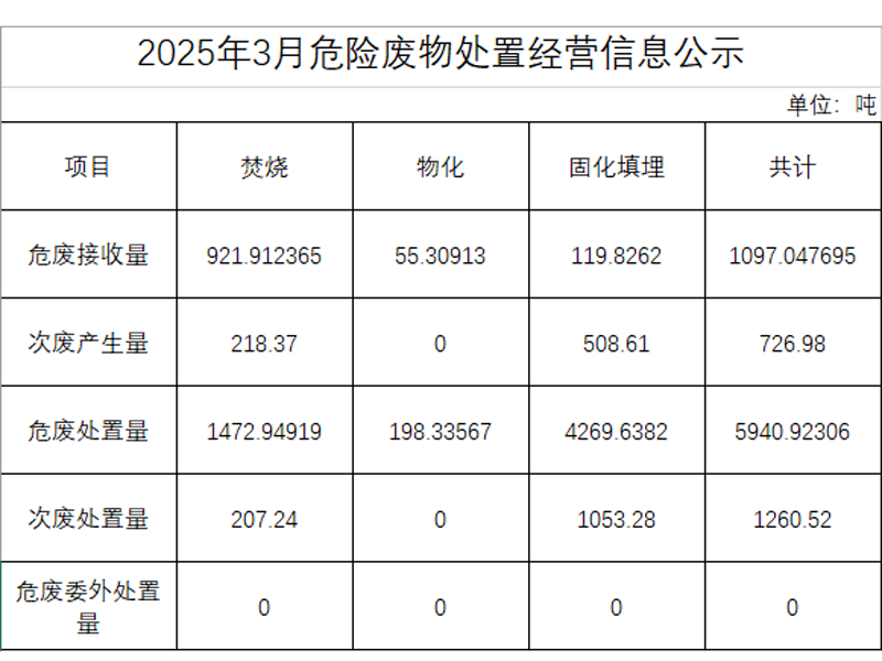 2025年三月危險廢物處置經(jīng)營信息公示
